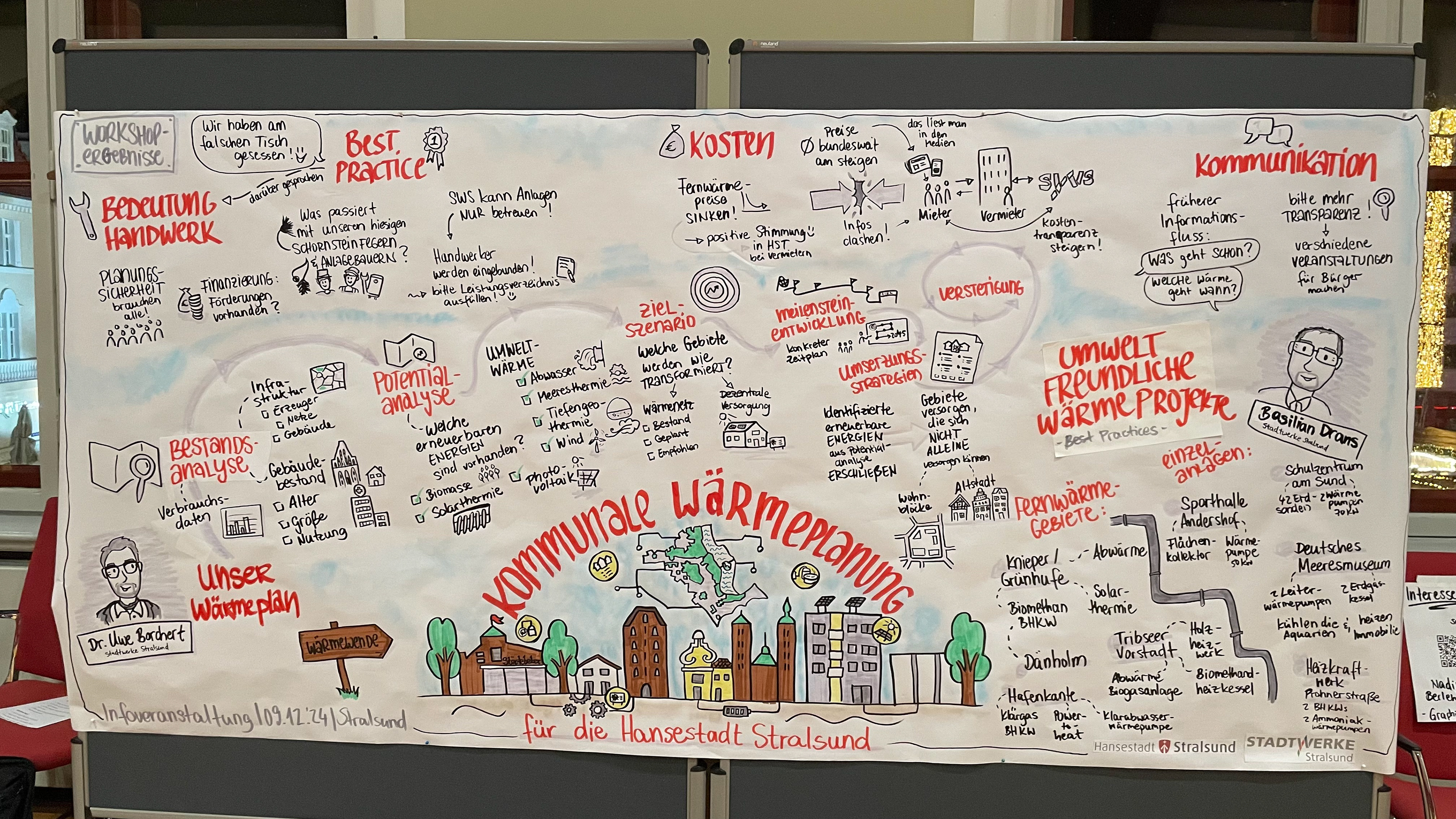 Im Rahmen der Kommunalen Wärmeplanung für die Hansestadt Stralsund durfte ich in einem Graphic Recording die Inhalte Informationsveranstaltung am 09.12.2024 im Stralsunder Rathaus in einem visuellen Protokoll festhalten.